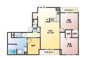 リビング広々使え収納もそれぞれの部屋にあり使いやすい間取りです。新婚様にもおすすめのお部屋です。駅からも近く買い物や生活便利な立地です。 |