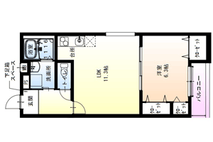 設備充実物件です。WiFi無料、木造住宅ですが全部屋角部屋設計で音漏れ軽減、広々とした1LDKタイプです。 |