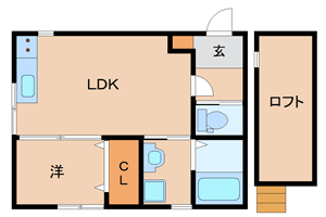 2階のみロフト付、スーパー近隣にありお買い物便利な立地条件、設備充実の1LDKタイプですよ。 |