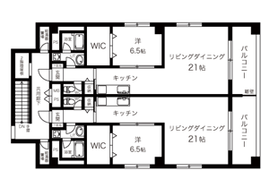 ワンフロア2部屋で全部屋角部屋、広々とした60平米超のRC造1LDK。キッチンやバルコニーも広々です |